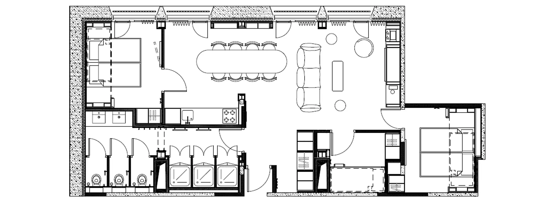 2 lits de 180x200 ou 4 lits de 90x200 + 4 lits de 90x200